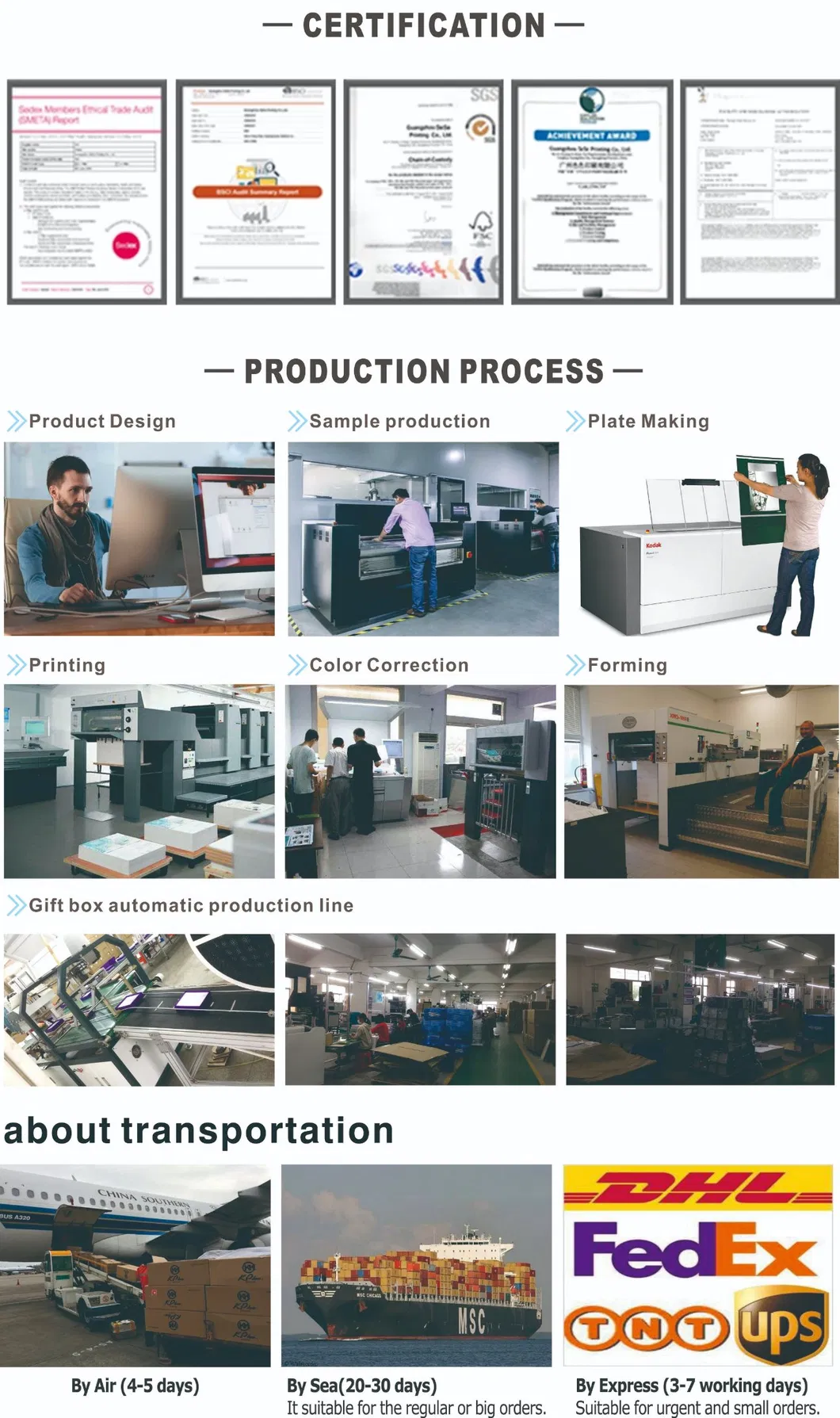 6. what's your advantage comparing with other packaging factories?Our factory focus on making gift box for more than 10 years, so quality is ensured. Besides, our sales people is very responsible and professional, so we could analyze your entire project and work out the most effective strategy to accomplish high-end results.