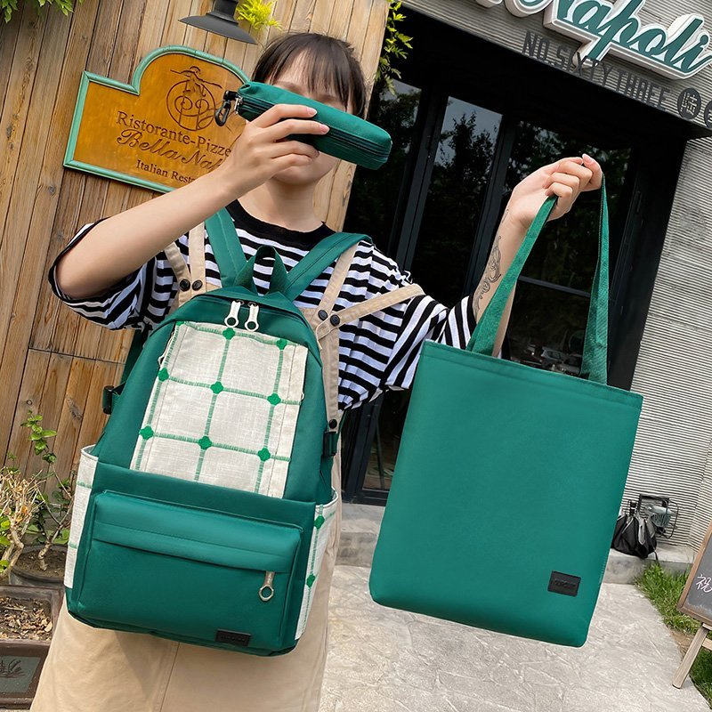 Wholesale Teenage Rucksack China Ready Stock Bookbag Cheap 4 Pieces in 1 set Checked Color Leisure Student Backpack Canvas School Bags Set1. Waterproof and scratch proof nylon fabric, with dual zipper2. school bag set with backpack, shoulder bag, mini bag3. Large capcity. able to hold 14inch laptop ......
