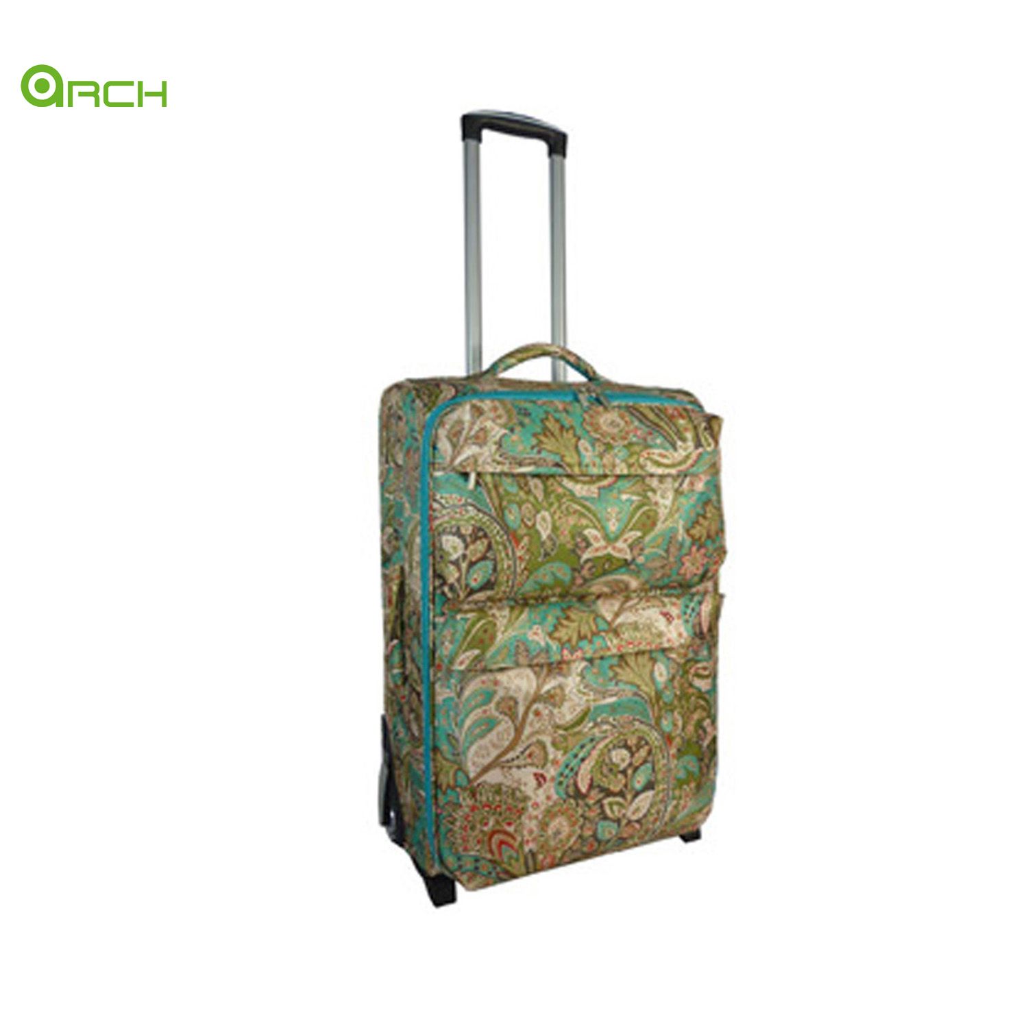 Light weight fashionable printing polyester luggage with two front pockets and aluminum trolley systemMade from lightweight and durable new fashion design material, along with skate wheels and spacious capacity, this luggage is light yet tough.It is perfect for the young travellers and keeps you comfortable on the go.